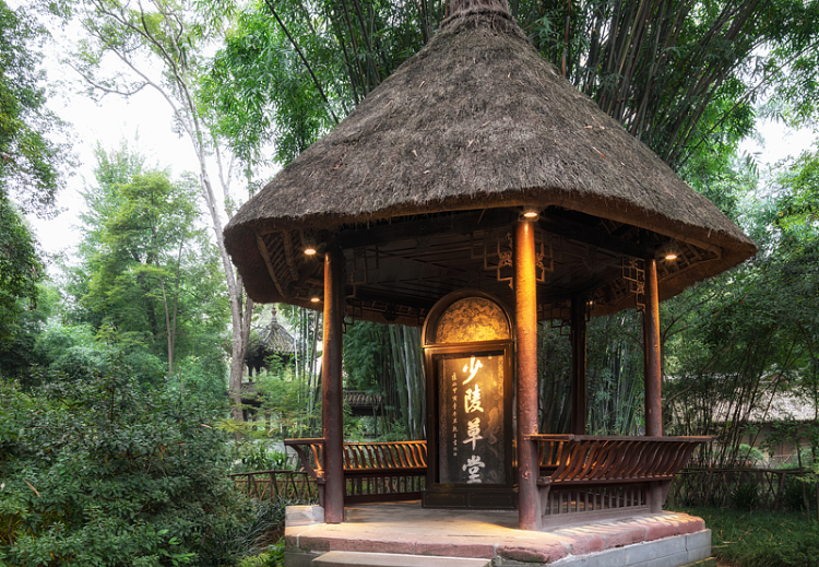提到成都,人们总会想到杜甫草堂;提到草堂,人们又定会浮想这样一幅画面:老迈的诗人拄着拐杖,孤立于瑟瑟秋风之中,在他面前,屋顶的白茅随风飞舞、飘向远方……杜甫是诗中“圣人”,草堂是文学“圣地”。成都杜甫草堂,经过千余年的积淀,已经成为一个代表中国古典诗歌精神的文化符号。