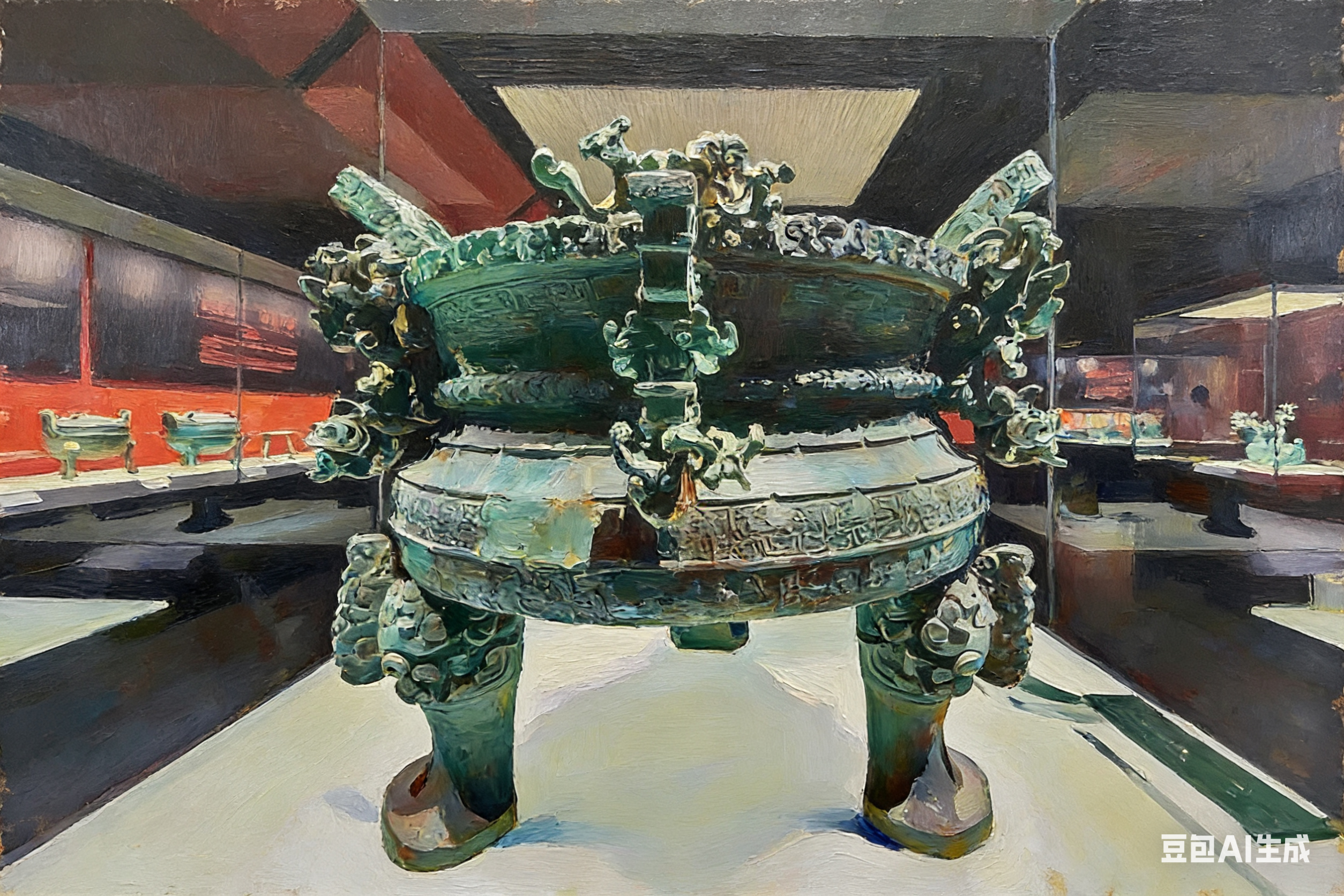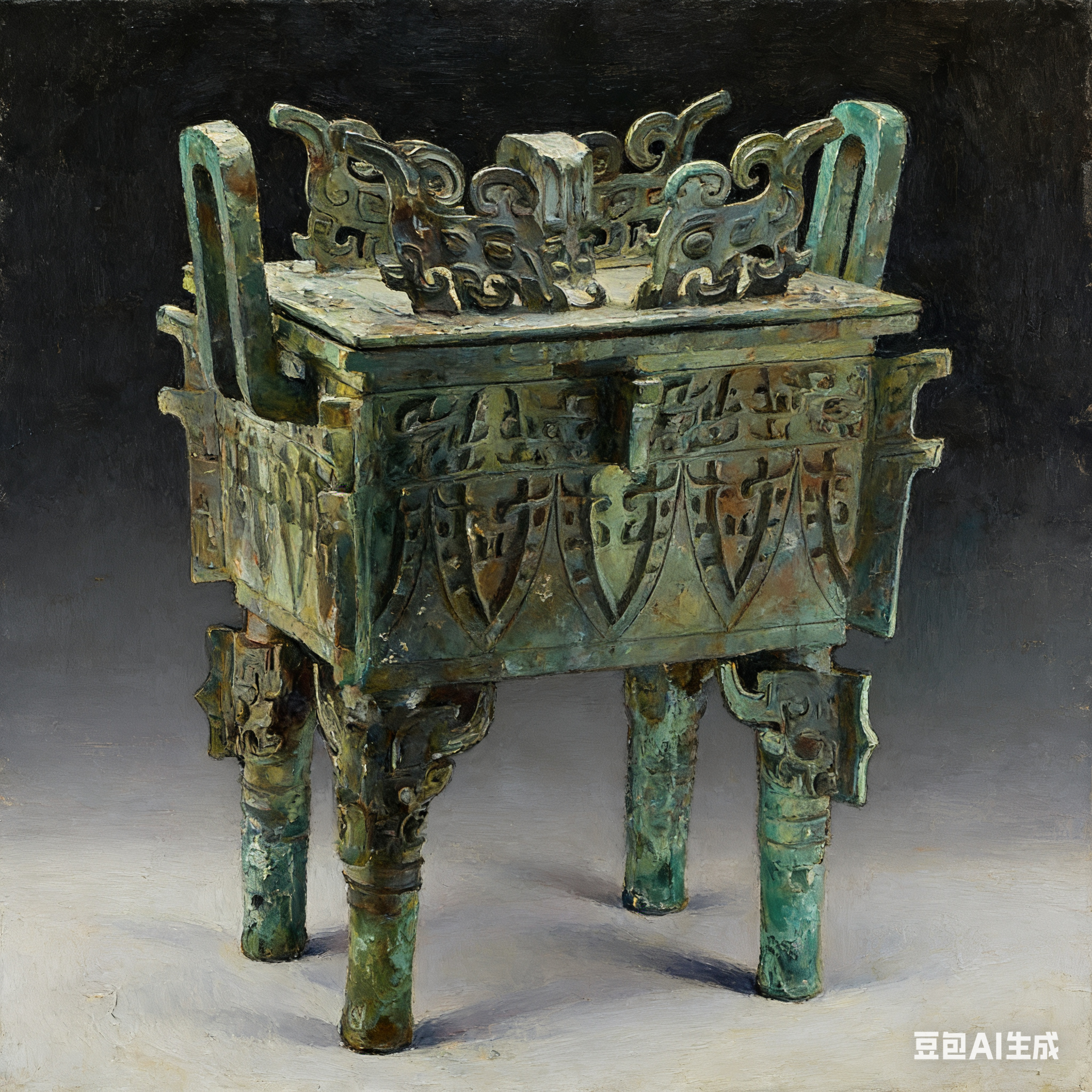 ▲湖北随州叶家山西周早期墓地出土的方鼎(图像由AI辅助生成)