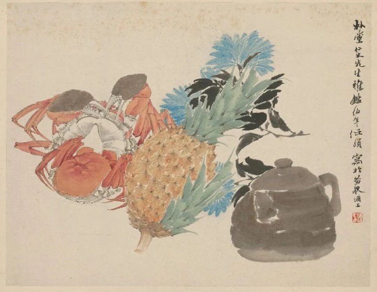 清·任伯年《菠萝菊蟹页》,故宫博物院藏。