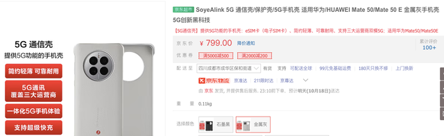 但9月23日上市的华为Mate50系列5G通信壳,价格并未变化,仍为799元。华为京东客服告诉红星资本局,华为Mate50系列5G通信壳此前有抢购活动,价格降至219元,目前活动结束,已经恢复了原价。