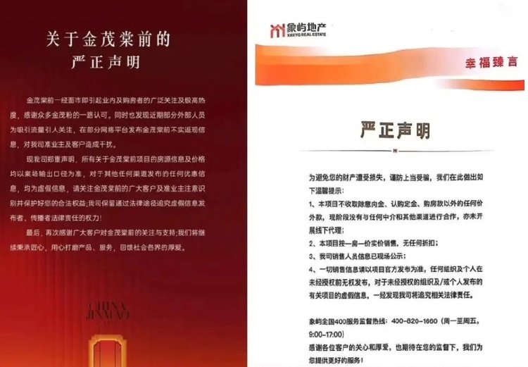 同时,金茂上海公司也通过微信公众号发布严正声明表示,发现部分外部人员为了吸引流量,引人关注,在部分网络平台发布金茂棠前项目的不实返现信息,对准业主及客户造成干扰。