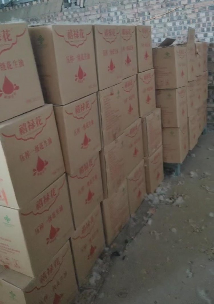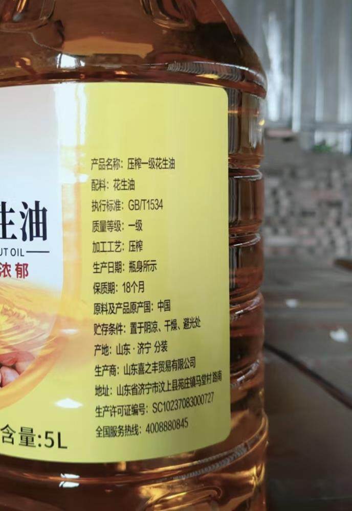 极目新闻记者注意到,这批花生油的品牌为“禧禄花”压榨一级花生油,生产商为山东喜之丰贸易有限公司,地址为济宁市汶上县苑庄镇马堂村路南。