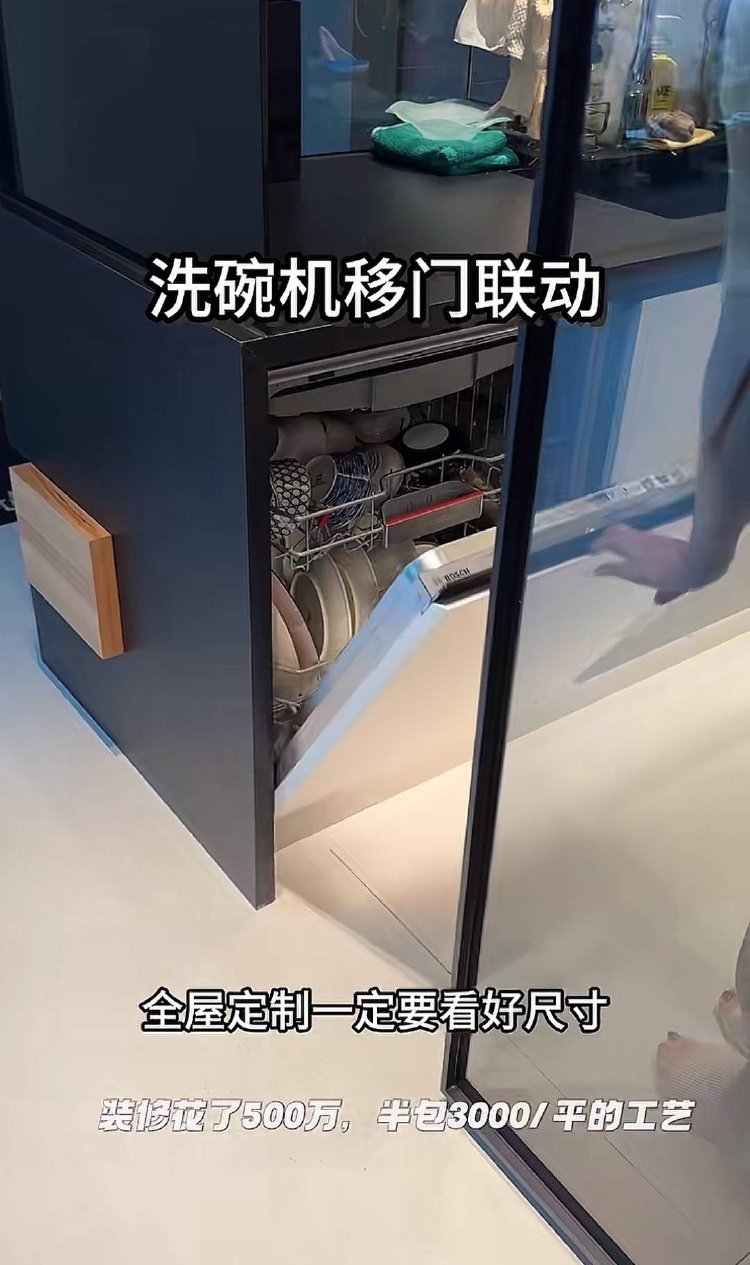 蔡先生家洗碗机与柜门相互成障碍(社交账号截图)