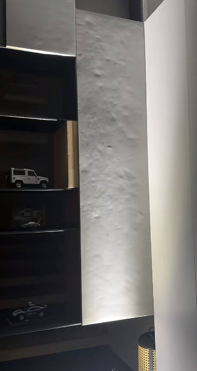 装修过程中,问题开始出现。蔡先生说,有些问题是明面上的,有些问题则隐藏的:报价中每平米2800元的铝板柜门,他从店家处得知每平米只要1400元;每块3800元的岩板地砖,开荒保洁导致6块地砖腐蚀刮花;每平米800元的艺术漆,表面坑洼“像月球表面”;每平米860元的木地板,沾染水痕后无法擦掉,水杯放在地上就形成一个圆圈;3.8万元的沙发持续酸臭,白天黑夜开着风扇对着吹,店家拖走清洗多次,均无法清除臭味;1万多元的椅子,比设计尺寸小了近20厘米;仿版的茶几比正版还贵1000元,并且边缘掉漆,摆放不稳。