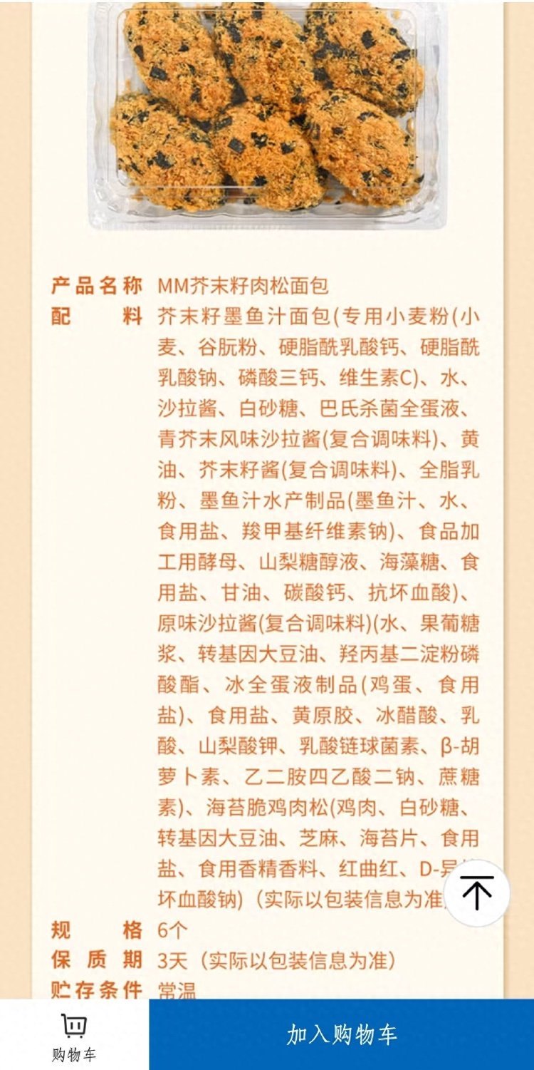 九派新闻消息,据经视直播报道,近日,有网友发帖称,山姆会员商店的MM芥味籽肉松面包,以前的外包装上标注了配料表,现在改用新配方后,线下售卖的该产品外包装上,配料表都被隐去了,仅标注:配料成分见散装食品标签或线上产品信息。而网友经线上查看后发现,如今配料表中所展示的“转基因大豆油”成分,在过去的外包装中并不包含。