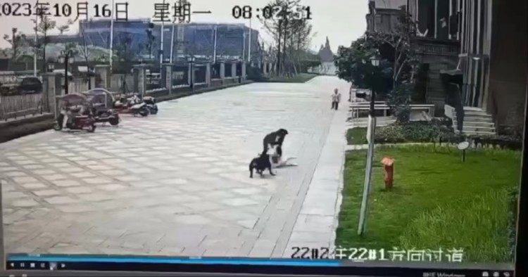 肇事犬只逃离现场后,有行车记录仪显示,16日8时18分许,涉事罗威纳犬穿过小区正门前的马路。16日22时许,罗威纳犬被捕获。