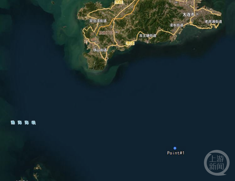 根据图片显示,船只12月3日下午13时41分左右,所处位置为纬度38°45'52''N,经度121°5'12''E。上游新闻记者根据经纬度定位发现,该海域位于旅顺口东南方向,老铁山水域东侧。