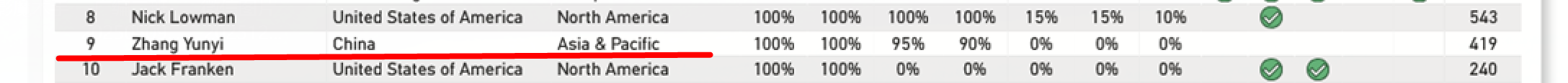 随后张云翼参加了线上淘汰赛,这是一种1V1的激烈对决,256名选手通过抽签捉对厮杀,结果他发挥出色,成功杀入最后的八强,直接“保送”进入全球总决赛的半决赛。