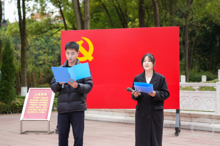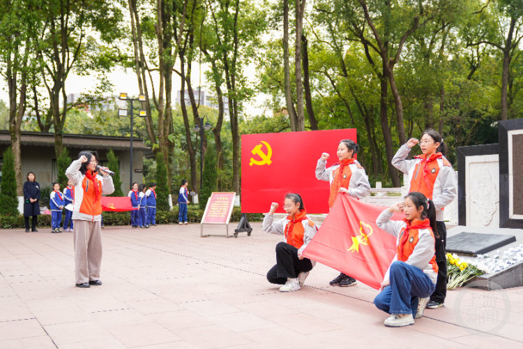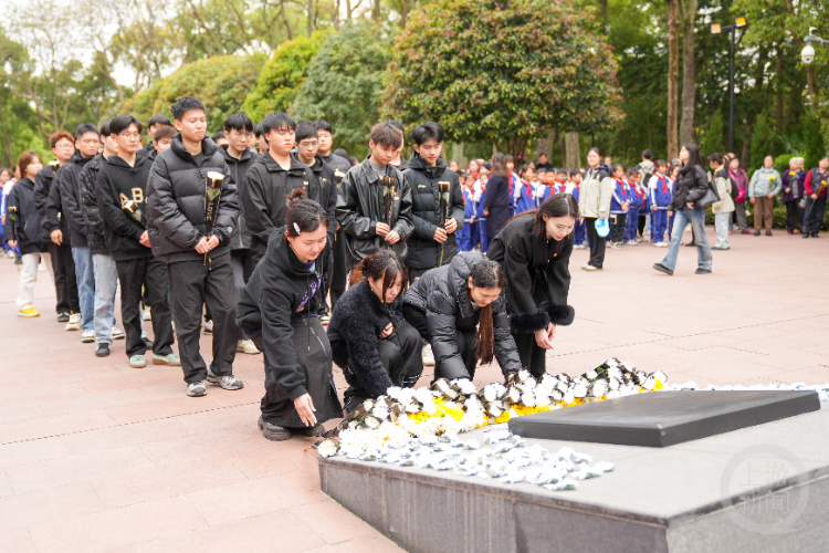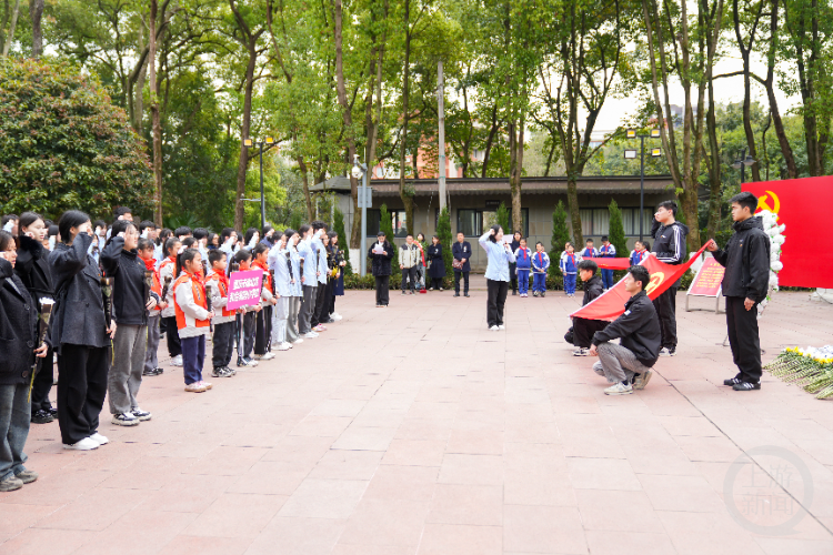 育仁中学的戴枋怡同学带领团员们重温入团誓词,和合家园小学的陈柯竺同学带领少先队员们宣读入队誓词,展现了新时代青少年的责任与担当。重庆海联职业技术学院的王璐凯和何云雨同学带来诗歌朗诵《红岩魂·清明祭》,生动展现红岩烈士们的英勇事迹和崇高精神,让在场师生深受感染。最后,师生们怀着崇敬的心情,向烈士纪念碑敬献白菊,并深深鞠躬致敬。