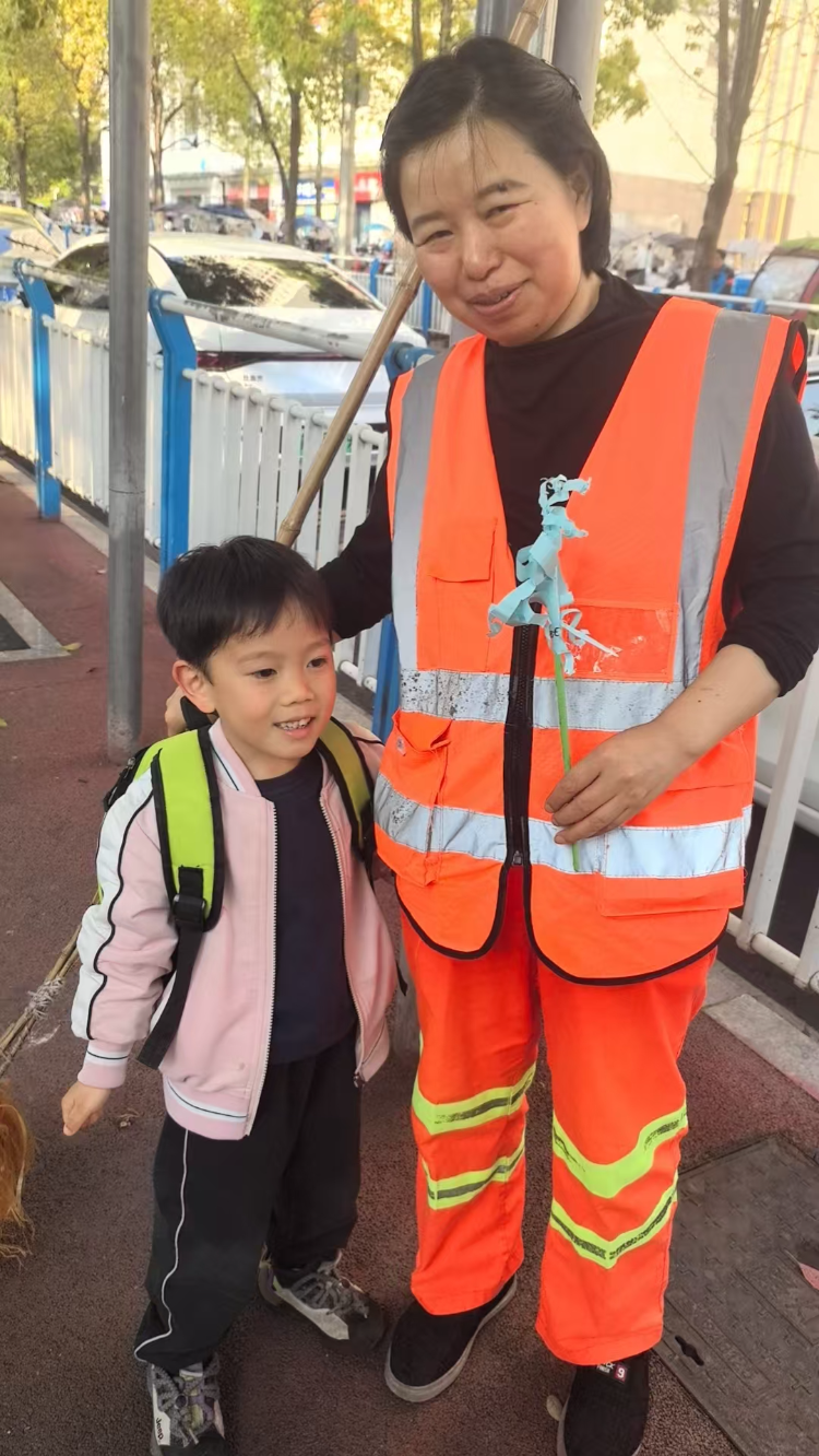 活动中,孩子们还将亲手制作的小礼物送给环卫工人,让他们深受感动。随后,老师带领孩子们围坐在一起分享感受。“我以后要把垃圾扔进垃圾桶,不让阿姨重复打扫。”“阿姨的手有茧子,肯定很疼。”童言童语中,尊重与感恩的情感自然流露。