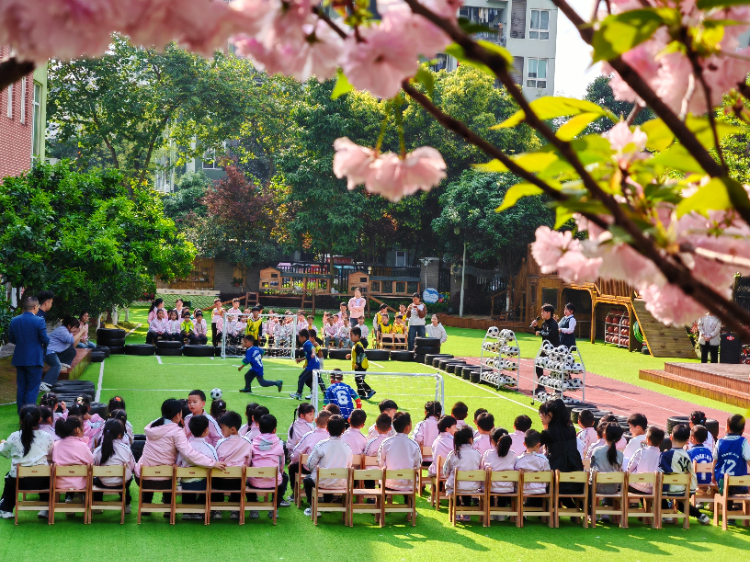 为深入践行体教融合理念,培养幼儿体育精神,促进园所间的交流合作,4月8日,渝北区莲花第二幼儿园(以下简称“莲花二幼”)联合渝北区空港佳园第二幼儿园创新举办了一场“如风奔跑,点亮足球梦想”友谊赛,通过专业赛制设计、跨园联动机制,展现新时代幼儿阳光体育风采,构建幼儿体育交流新范式。