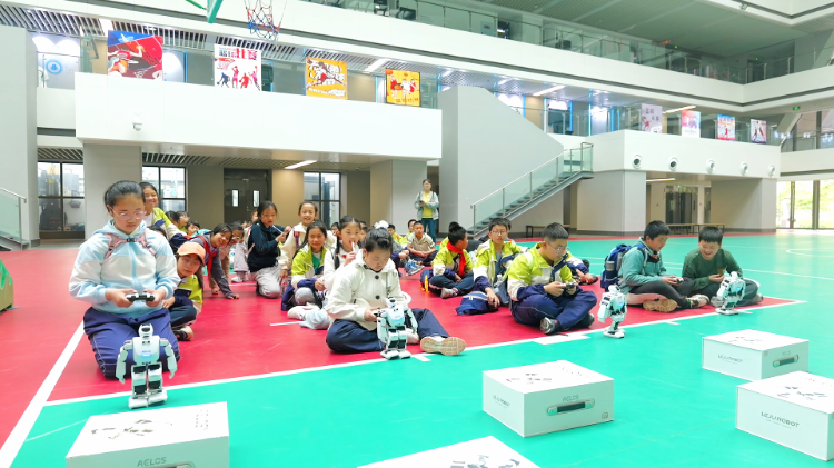 活动的“高光时刻”莫过于孩子们与机器人的互动环节。“克鲁泽!给我们跳段舞蹈吧。”学生们贴近名为“克鲁泽”的机器人耳边,尝试用语音指挥机器人。随即,“克鲁泽”伴着音乐欢快地舞动起来。孩子们轮流上前与机器人互动,尽情享受着智能科技带来的乐趣。