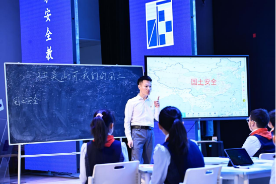 在课例展示环节,博雅小学教师贺登明执教的《壮美山河,我们的国土》引导学生认识祖国的壮丽山河,增强学生的国土意识和爱国情怀。两江新区巴蜀学校教师孙华洋执教的《维护经济安全——红领巾在行动》,结合当下关税贸易战等热点,引导学生理解经济安全知识,让同学们在轻松愉快的氛围中学习,增强了经济安全意识。