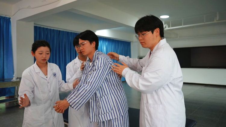 康复技术专业的竞赛则以案例为导向,聚焦神经系统疾病与骨骼肌肉疾病的康复评定与康复治疗,选手需在20分钟内完成问诊、评估、治疗、提问四个环节。大家通过标准化体格检查、治疗手法演示等,展现临床决策能力。
