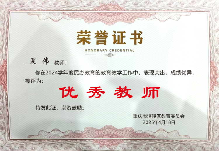 据悉,涪陵信息技术学校致力于提供高质量教育,培养了大批技术熟练、创新能力强的学生。钟登余在接受表彰时表示,这份荣誉不仅是对个人工作的认可,更是对整个学校团队努力的肯定。他提到,学校始终坚持“以学生为中心”的教育理念,通过不断优化课程设置、加强师资队伍建设、提升教学设施,为学生创造了良好的学习环境和发展空间。