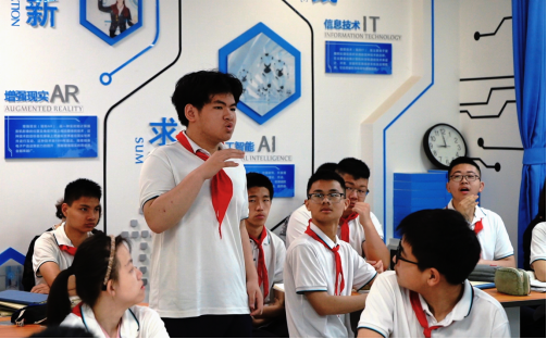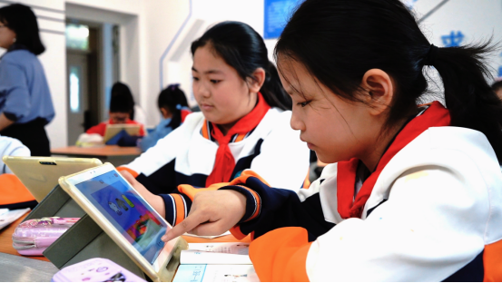 课堂上,语文教师以VR技术具象化“格物致知”的抽象概念,带领学生体会“绿”的丰富与宽广;数学老师借助智能平板,通过学生连一连、画一画实现双向及时反馈……智能终端与课堂的有机融合,使学生的课堂参与度提升40%,知识留存率提高35%,成为课堂教学中的夺目亮点。