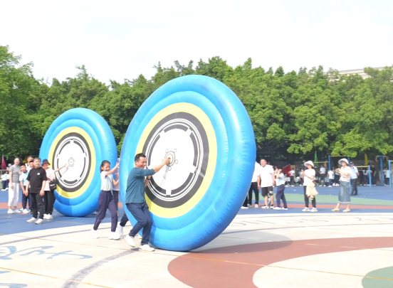 运动会上,老师们和家长们也化身“运动健将”,携手在趣味运动项目中大显身手。老师们走出办公室、走出教室、走向操场,在“趣味云梯”的比赛中展现满满的活力与热情。家长与孩子默契配合,赛道上的每一步都写满温馨。赛场上,参赛队员全力以赴、奋勇争先;赛场外,同学们出谋划策、加油助威,热烈的气氛弥漫了整个操场。