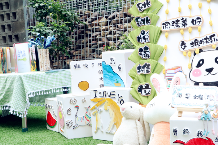 操场上,孩子们与家长齐心协力,用五彩斑斓的卡纸、彩笔精心布置自己的“小天地”:闲置的绘本被整齐地摆放在铺着碎花桌布的摊位上,手绘的“故事漂流站”“好书共享角”等创意海报格外醒目。有的摊位挂着自制的小彩旗,随风轻轻飘动;有的则摆放着可爱的玩偶,吸引着小朋友们的目光。