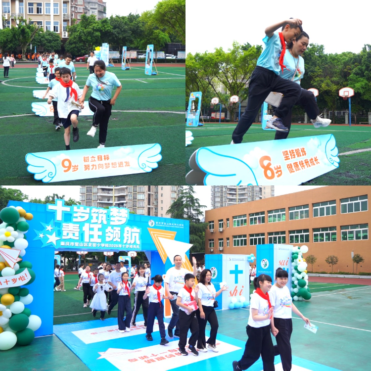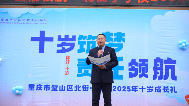 4月30日,重庆市璧山区北街小学校(以下简称北街小学)操场上彩球飞扬、人声鼎沸,“十岁筑梦,责任领航”北街小学教育集团2025年十岁成长礼在此举行。四年级全体学子在家长与老师的共同见证下,迈过一岁至九岁的九道关卡,穿过十岁成长门,共赴一场成长之约、青春盛宴。