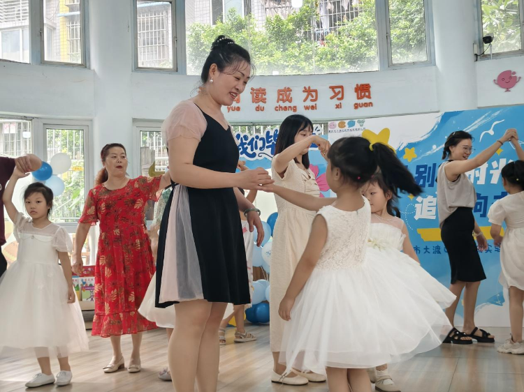 节目表演环节,幼儿们化身“小小追梦人”,在舞蹈《我有一个梦想》中用跳跃的步伐丈量未来的无限可能;亲子共舞《爱的华尔兹》成为亲情最动人的诗篇;手语舞《凤凰花开的路口》中,幼儿们无声地诉说着对这片乐园最深沉的眷恋;全体师生和家长还共同唱响歌曲《再见》,歌声中,既有对过去的告别,也有对未来的期待。