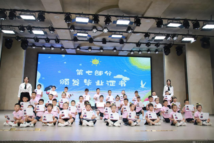 颁发毕业证书环节,幼儿们接过证书,脸上洋溢着自豪和喜悦的笑容。这是他们成长的见证,也是他们人生中的第一个重要里程碑。