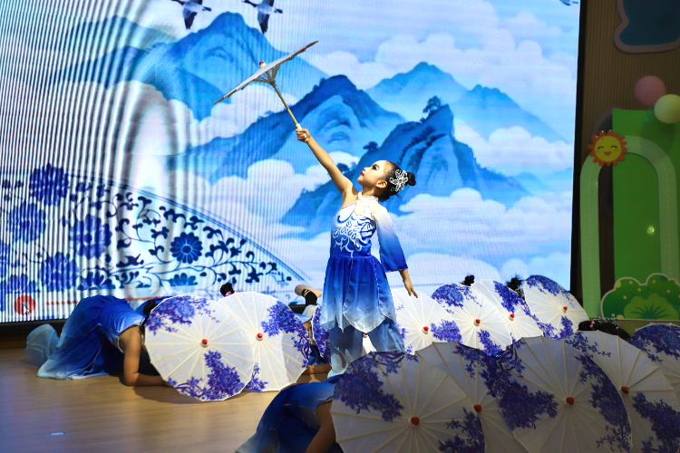 舞台则成为幼儿们自信绽放的天地。《童话梦想家》《青花瓷》《红红的太阳》与《阳光宅男》等节目轮番上演,歌舞间尽显童真与活力,幼儿们的歌声中传递着对幼儿园的眷恋。
