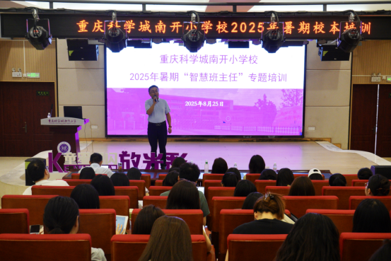 为进一步推进学校智慧德育建设,助力班主任专业成长,为新学期开好局、起好步,8月25日,重庆科学城南开小学校2025年暑期“智慧班主任”专题培训暨重庆科学城第一实验小学教育集团班主任专题研修,在重庆科学城南开小学校举行。重庆科学城南开小学校全体教职工和重庆科学城第一实验小学教育集团成员学校班主任代表共100余名人全程参与本次活动。