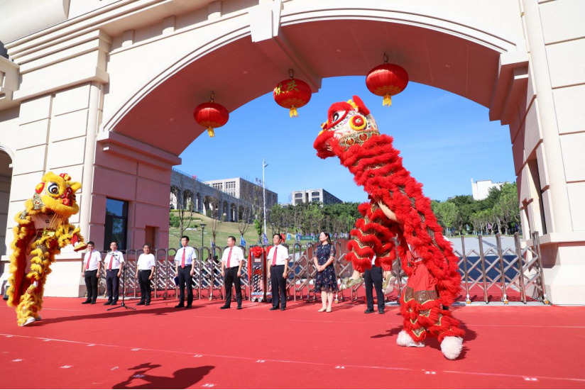 礼炮鸣响,雄狮昂首。8月28日上午,重庆外语外事学院綦江校区新落成的东大门前彩旗飘扬,学校校领导、师生代表及参建方代表齐聚于此,共同开启东大门启用仪式。这扇凝聚4个月建设心血的“校园新地标”,不仅为綦江校区增添了大气庄重的门户形象,更标志着綦江校区功能完善与高质量发展迈入新阶段。学校党委书记、督导专员岳兴懋主持仪式。