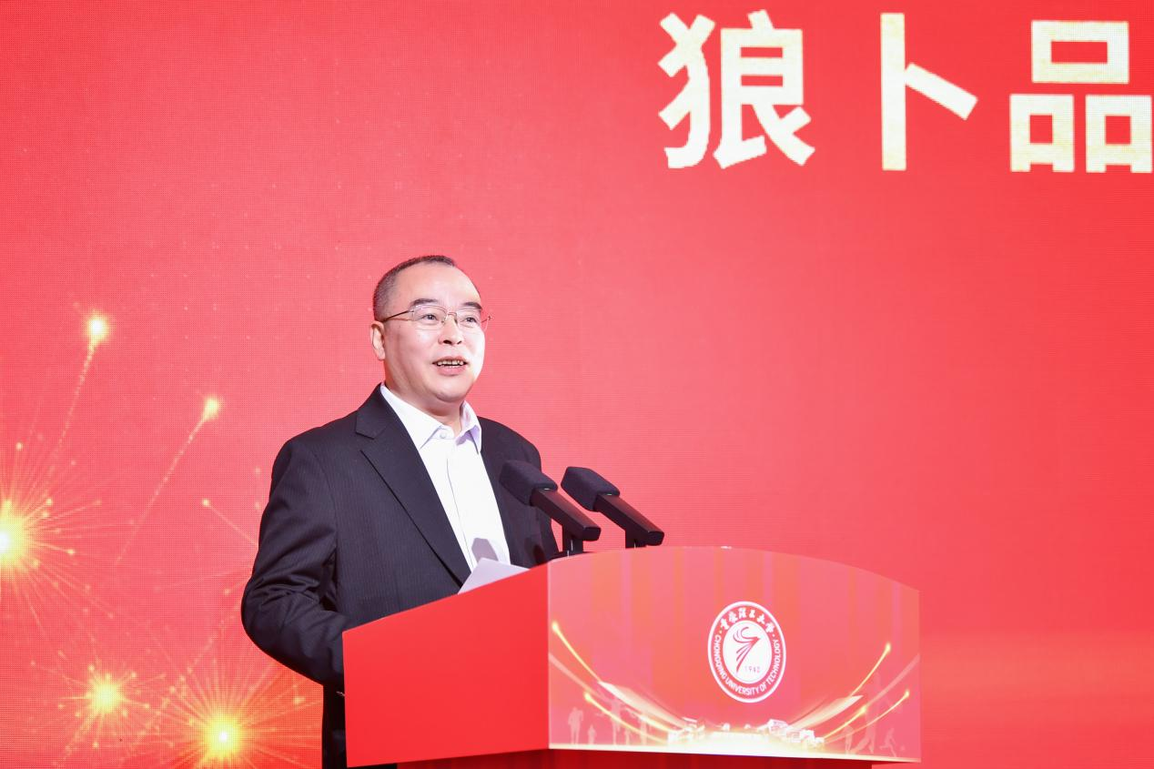 重庆理工大学党委书记、校友总会会长康骞在致辞中回顾了学校85年办学历程中重理工人“士志于道、继往开来”的担当与传承,并介绍了近年来学校在教学、科研及校园文化建设方面取得的成果。他谈到,重庆理工大学管理学院1989级杰出校友杜立毕业后深耕品牌营销领域,创立狼卜品牌营销策划股份有限公司并打造为行业标杆,这份敢闯敢拼、善作善成的品质,正是重理工人奋斗精神的生动写照。多年来,杜立校友始终心系母校,长期捐资捐物支持母校人文社科建设与创新创业项目。为感谢杜立校友的无私奉献和深情厚谊,学校决定将新建的文科楼冠名为“狼卜”文科楼,让情怀具象化,让感恩被看见,谱写校友与母校双向奔赴的佳话。