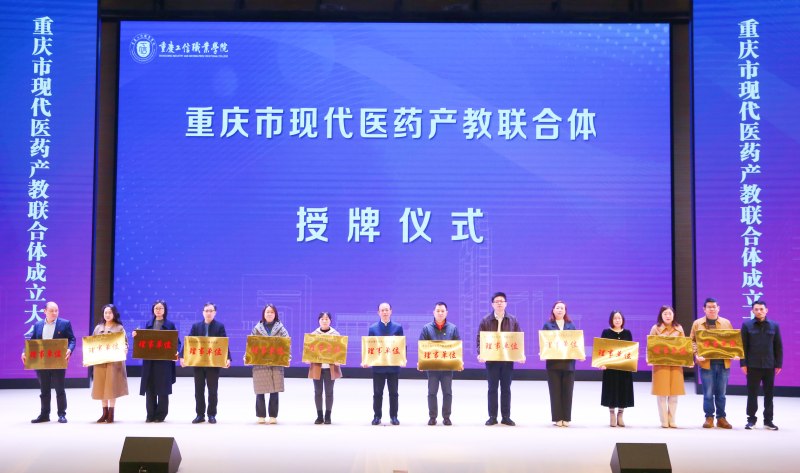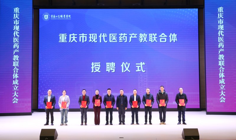 大会现场还公布了重庆市现代医药产教联合体理事长、常务副理事长、副理事长、秘书长、副秘书长等人员名单,并举行重庆市现代医药产教联合体授聘仪式。