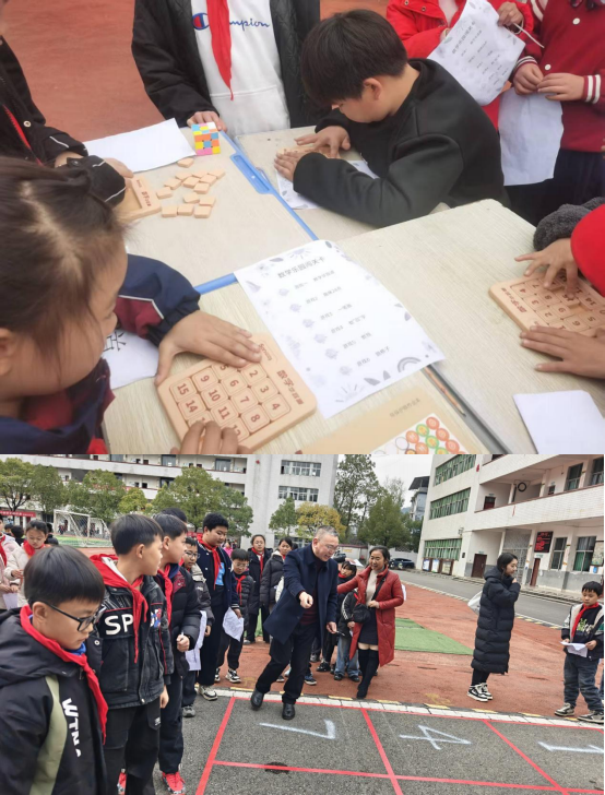 分会场的分层主题活动也极具特色。低段(1~2年级)开展“趣味启蒙·玩转数与形”游戏,让学生感知数与形的特征;中段(3~4年级)以“思维碰撞·探索数学规律”为核心,通过操作与推理提升逻辑思维;高段(5~6年级)进行“深度挑战·应用与创新”实践,培养学生数学应用与创新能力。各年级由指定教师负责,确保活动有序开展。