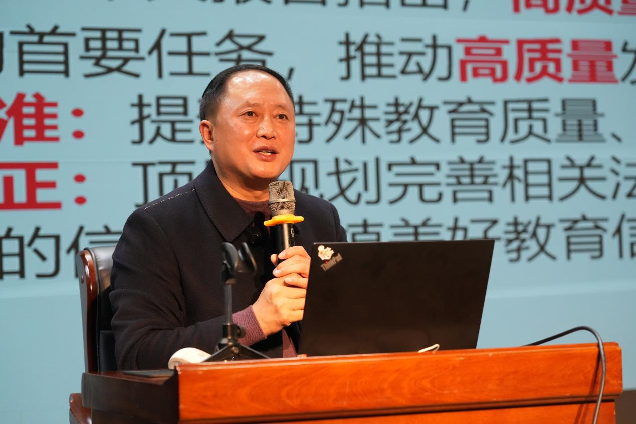 “渝中区始终将办好特殊教育摆在教育民生的突出位置。”渝中区教委副主任杨斌介绍了渝中区在推动特殊教育高质量发展的举措及成效。他强调,各学校要紧紧围绕国家特殊教育改革实验区建设,做实制度保障,构建协同育人共同体;做细专业支持,深化精准育人新范式;做优支持生态,培育融合发展新沃土,积极探索“全员参与、全程融入、全方位支持”的融合发展机制。