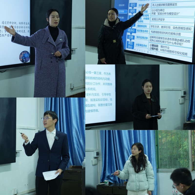 涪高中、忠县忠州中学校、梁平区第一中学校、垫江第一中学校、秀山土家族苗族自治县第一中学校的教师代表参加高一生物项目角逐。选手聚焦《分子与细胞》第3章第3节“细胞核的结构和功能”,结合细胞结构图、细胞功能相关实例,通过动画演示、探究任务设计等方式,将抽象的概念具象化,生动展现了对教材的深度理解和灵活的课堂驾驭能力。