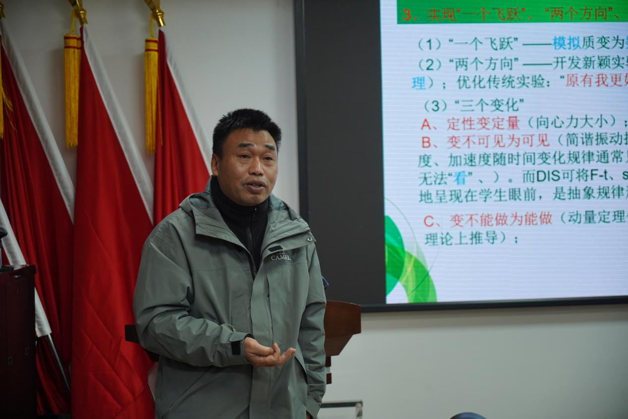 谭兴文以《物理实验教学的实践探讨》为题,围绕数字赋能、人工智能赋能两大维度,结合具体教学案例展开讲解。他不仅系统阐释了数字技术与人工智能融入物理实验教学的核心逻辑,强调其对打破传统教学壁垒的重要性,还深入解析现代技术在物理实验教学中的创新应用路径,指出其在解决物理教学中的痛点、难点方面的优势,为教师优化实验教学、提升课堂效率提供全新思路与可操作的实践方案。