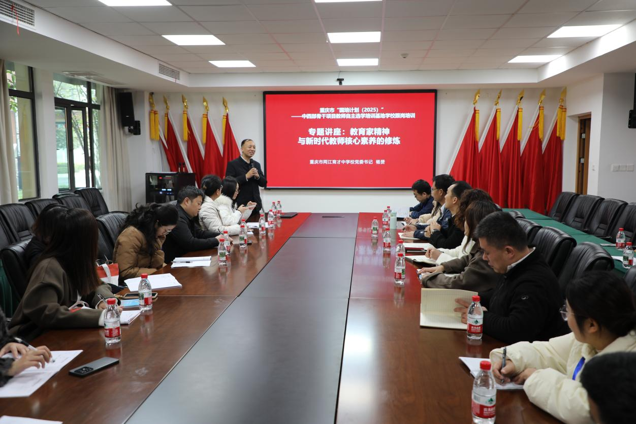 为扎实推进中西部地区基础教育高质量发展,全面落实新时代教师队伍建设改革部署要求,12月6日至20日,重庆市“国培计划(2025)”——中西部骨干项目教师自主选学培训基地学校跟岗研修活动在重庆市两江育才中学校(以下简称“两江育才中学”)举办。