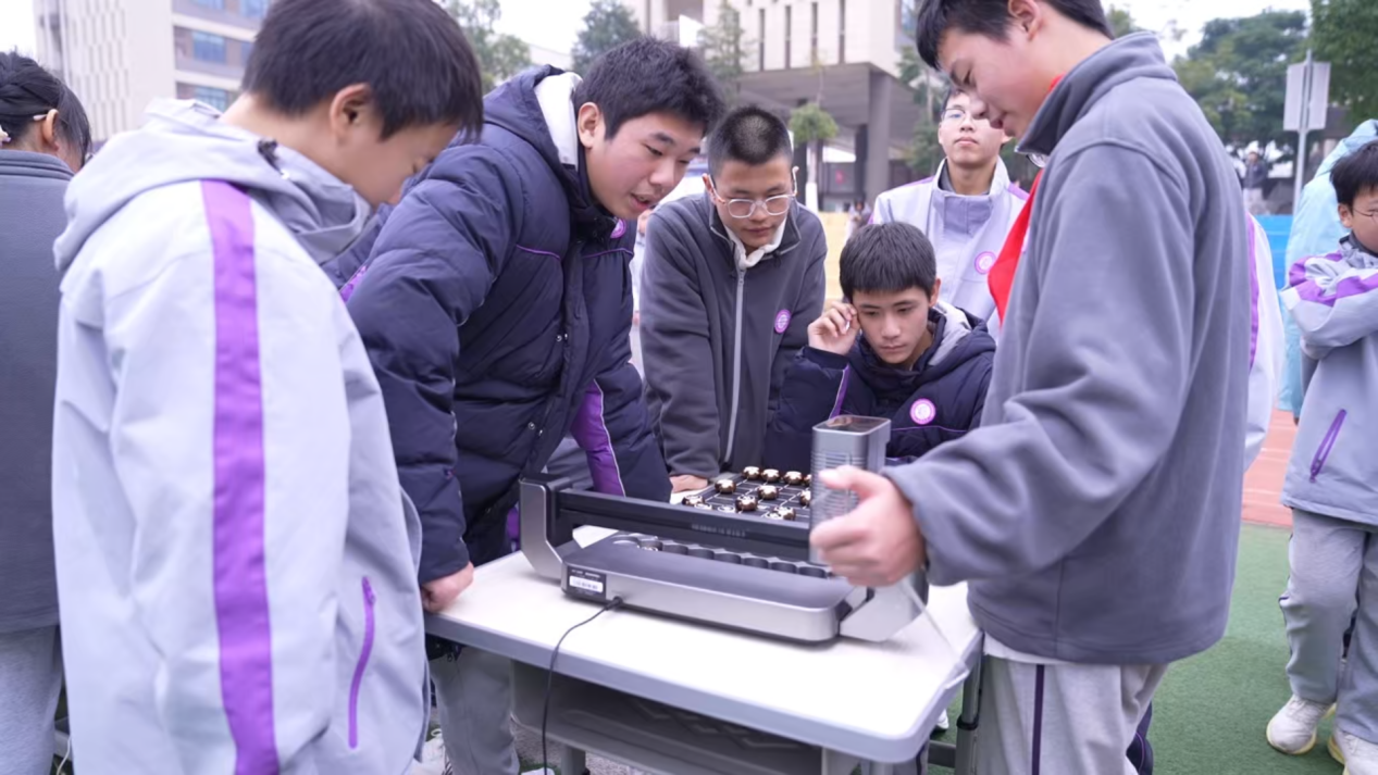 据悉,本届科技节亮点纷呈,内容丰富多元。上午,橡皮筋动力飞机、纸飞机竞距、纸船承重等技能挑战赛同步开展,同学们同场竞技、各展巧思,在比拼中深化对理科知识的理解。重庆科技大学万玺教授带来的《走近人工智能》科普讲座,以专业视角引领大家了解科学前沿,拓宽认知边界。