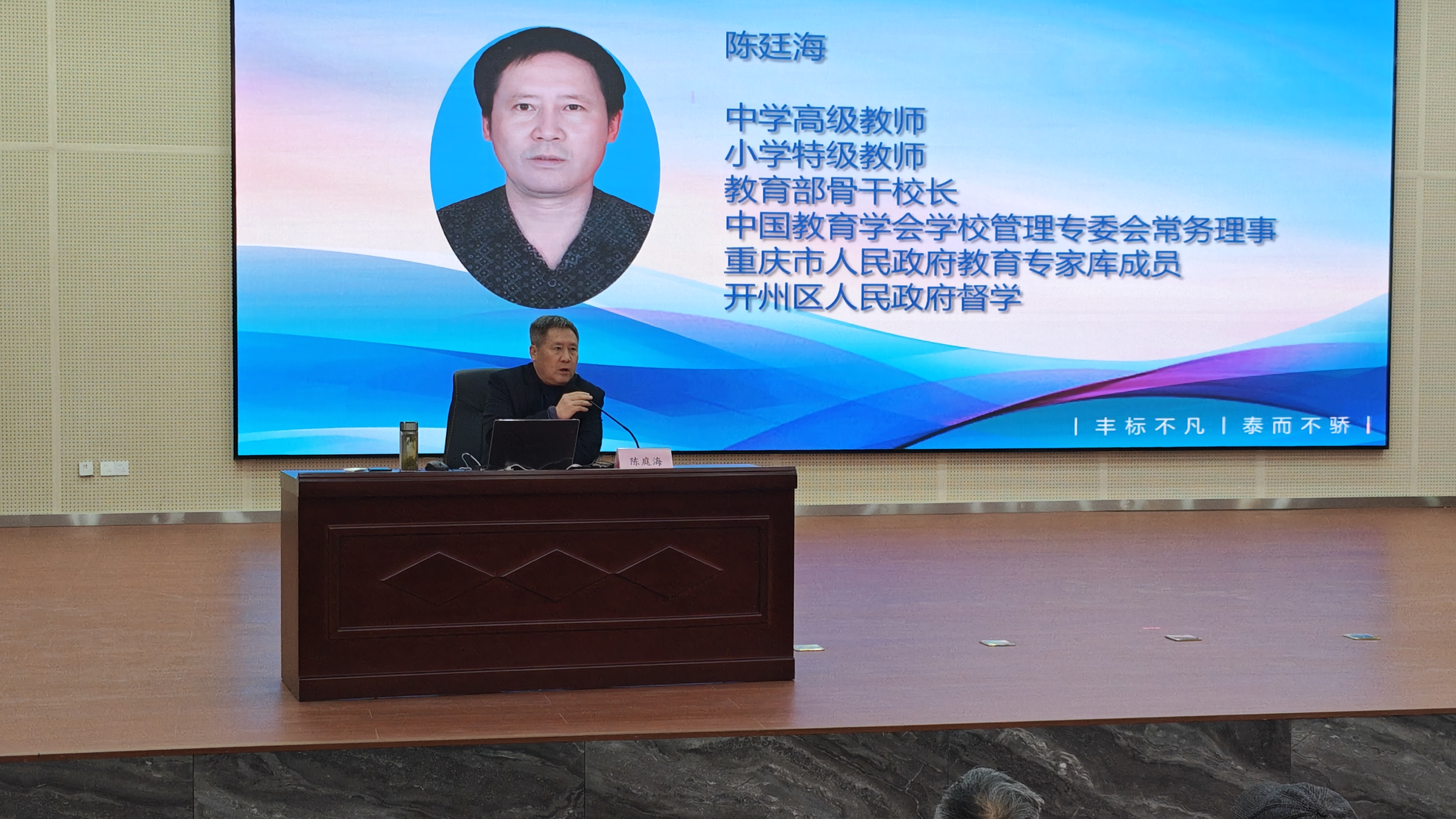 活动伊始,学校特邀教育部骨干校长、特级教师陈廷海开展专题讲座。他以“中间人”说四个方面的“中间话”为脉络展开分享,从“丰泰的辉煌需要我们共同的努力”“家庭教育的重要性”“家长与老师需同心协力”“几种亟待重视的家庭教育”四大维度,深入剖析家校共育的核心要义。他针对家庭教育中的成长规划、思维格局等关键问题给出建议,提出“因孩子而改变自己的父母,才是决胜未来的狠角色”的理念,引发在场家长的深刻共鸣。