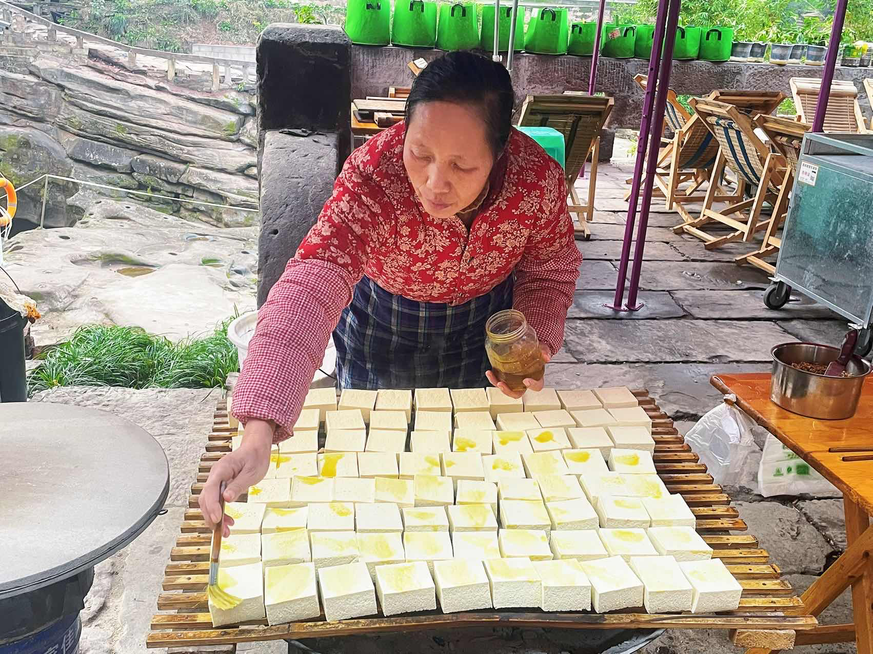 “传承人这个身份,是责任,也是福气。”蔡幼梅说。烟熏豆腐让她的生活从养家糊口,变成了传递文化与乡愁的桥梁。她的店铺被中央电视台、重庆电视台报道,豆腐更是走出本地,卖到了更远的地方——马来西亚、加拿大、非洲等国家,这让她自豪,也更觉重任在肩。