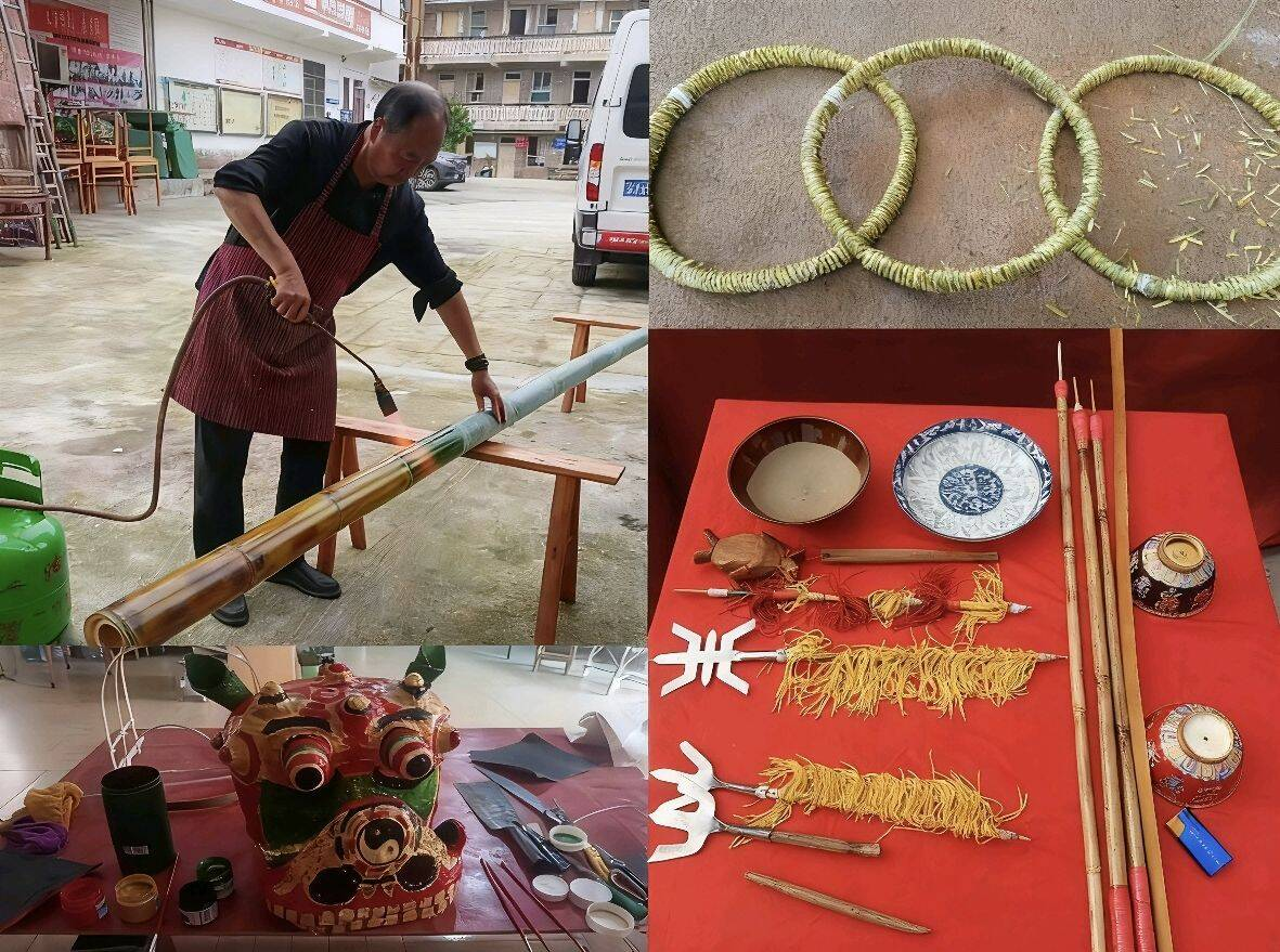 暮色渐浓,江风循径掠过白沙松林岗。李龙祥坐在屋檐下制作道具,清晨的锣声仿佛还在耳畔回荡。这声响穿越千年,在新时代从未断歇。