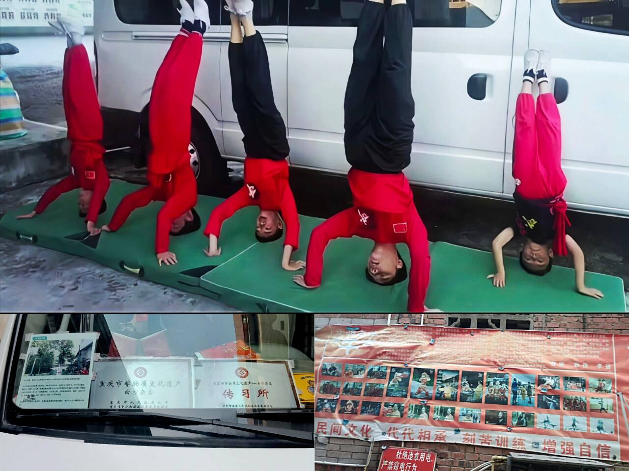 在这里,严苛的锤炼与悉心的呵护如同阳光与雨露,共同滋养着新苗成长。“练‘猴子爬杆’时,一个倒挂金钩的动作,师父就要让我们重复打磨上百遍。”谈及训练中的点滴,弟子们总是讲到李龙祥的严格。而这份看似严酷的要求背后,是更深沉的守护——每当孩子攀向杆顶时,李龙祥总会站在下方全神贯注,目光紧紧追随,双臂微张,为每一次惊险动作筑起最安全的护栏。“小时候总跟师父闹矛盾、反着干,长大后才懂得这份严格的温度。我们也想像师父那样,将白沙杂耍传承下去。”李龙祥的大徒弟蒲宇航谈到他,言语间满是感恩。