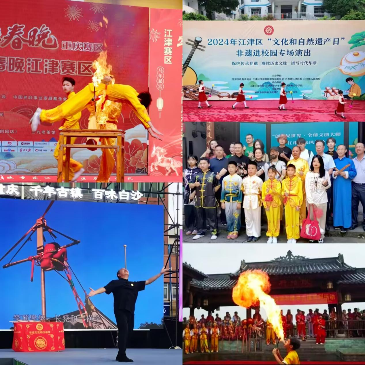 线下,李龙祥全力推动白沙杂耍进校园,带领弟子们将花棍、舞狮、小武术等杂耍项目带进操场与课堂。“原来我们的白沙杂耍那么酷!”同学们的欢呼和赞叹声里,是古老技艺在年轻心灵中最悦耳的回响。而李龙祥的弟子们,也从懵懂学童成为小传承人,在同龄人间播撒下传承的种子。2022年,由李龙祥他们参与的江津区鹅公小学“非遗进校园”项目,成功获评重庆市优秀实践案例。