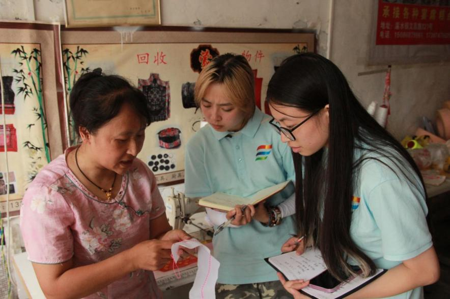 重外院学子记录綦江苗绣代表性传承人熊兴树的苗绣心得。