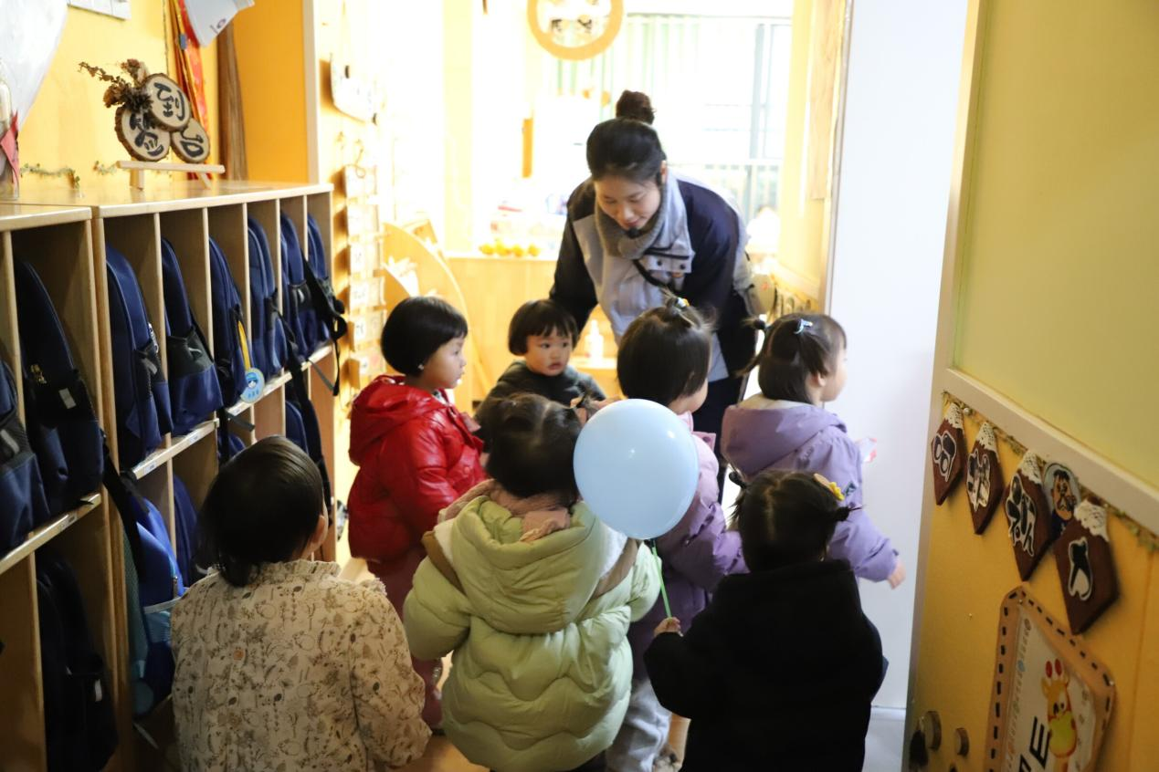 幼儿园门口的迎接环节是跳磴幼教集团礼育启蒙的第一课堂。身着跳跳兔服装的老师热情迎接每一组家庭,彰显园所“以礼待人、以情暖心”的文化内核。家长有序签到、为幼儿贴上新年姓名贴。精心设置的新年心愿墙更成为家园共育的情感纽带,家长与孩子共同写下成长期许,每一个心愿都承载着家庭对未来的憧憬,更让园所与家庭的联结愈发紧密。“我们早就听说幼儿园的托育体验活动办得好,从入园引导到环境布置,每一个细节都透着用心,瞬间缓解了我对孩子入托的焦虑。”一位陪同孩子参与活动的家长由衷感叹,言语间满是认可与安心。