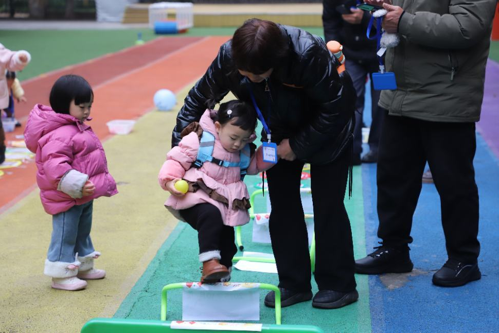 “跃动·新年运动会”环节聚焦“健康成长、亲情滋养”的核心育人目标,将运动锻炼与成长寓意深度绑定。活动以“跨越时光、点亮新年”为情景导入,设计了丰富多样的趣味运动项目,让孩子们在轻松的游戏中感知“成长进阶”的意义,在完成挑战的过程中建立自信心与成就感。亲子携手参与运动,不仅锻炼了孩子们的肢体协调性与运动能力,更在互动中增进了亲子情感,让亲情在陪伴中升温,为孩子们的成长注入温暖力量。