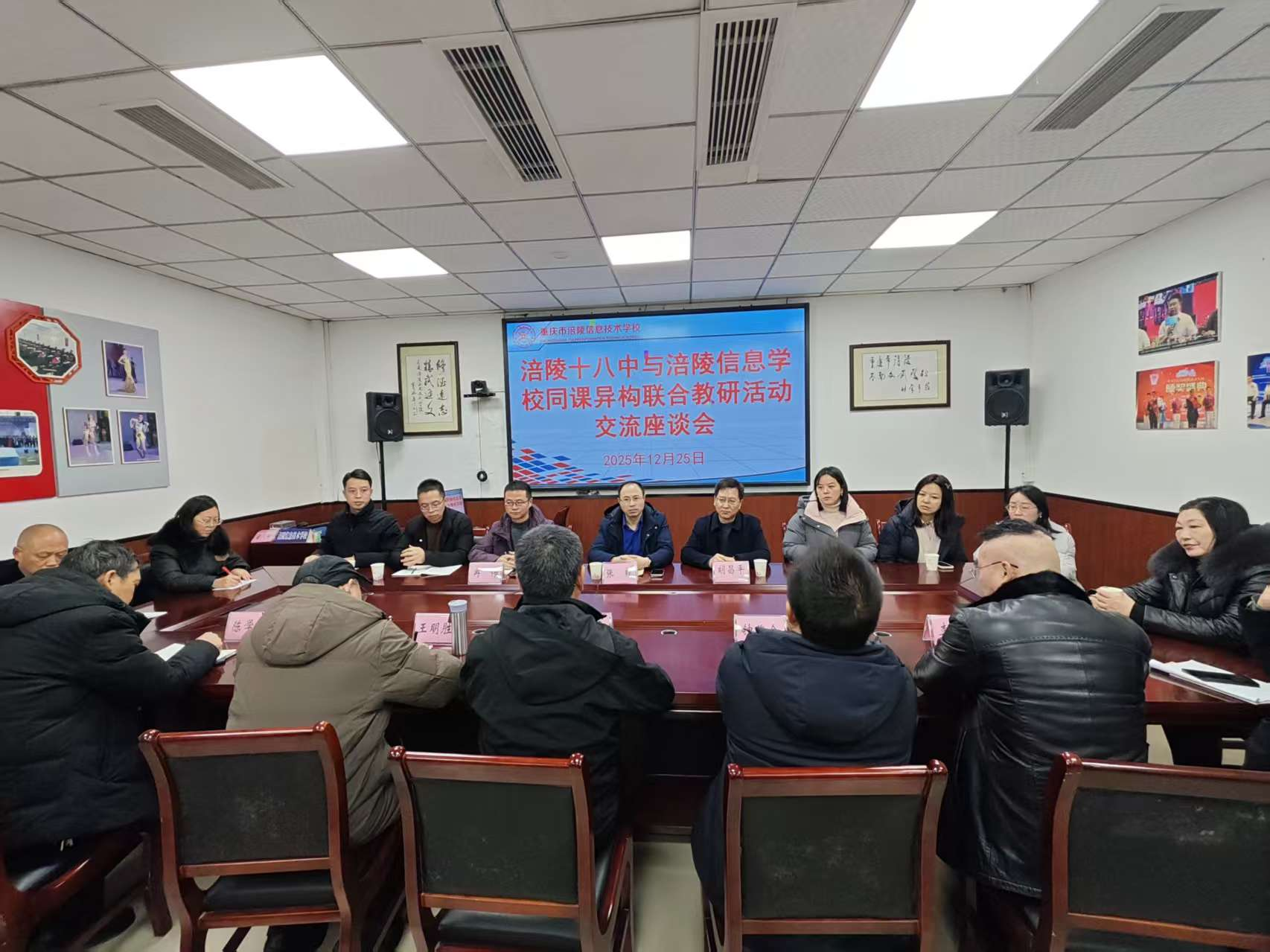 本次活动旨在通过不同的教学设计和课堂实践,碰撞思维火花,共同提升两校教师的教学教研水平。涪陵十八中作为涪陵信息技术学校综合高中对口指导学校,高度重视此次联合教研工作。双方党支部书记、教学副校长、教务处及教科室主任,语文、数学、英语学科教研组长和教师共同参与活动。