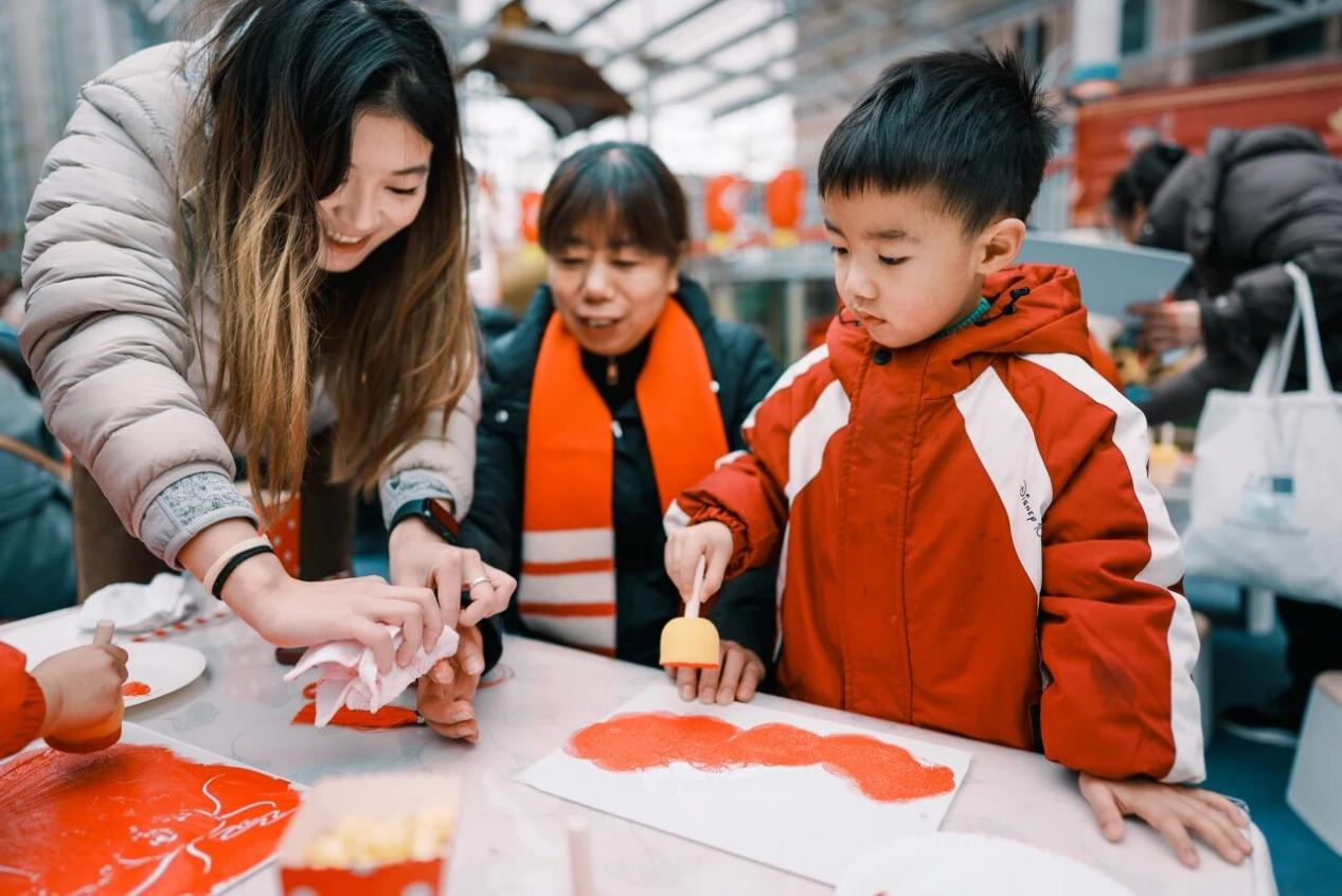 “非遗市集”篇章的非遗市集人气爆棚,孩子们手持特制“游园计划表”,化身“小小文化体验官”穿梭在传统手作区、民俗游戏区、传统美食区,解锁传统民俗的多样魅力。