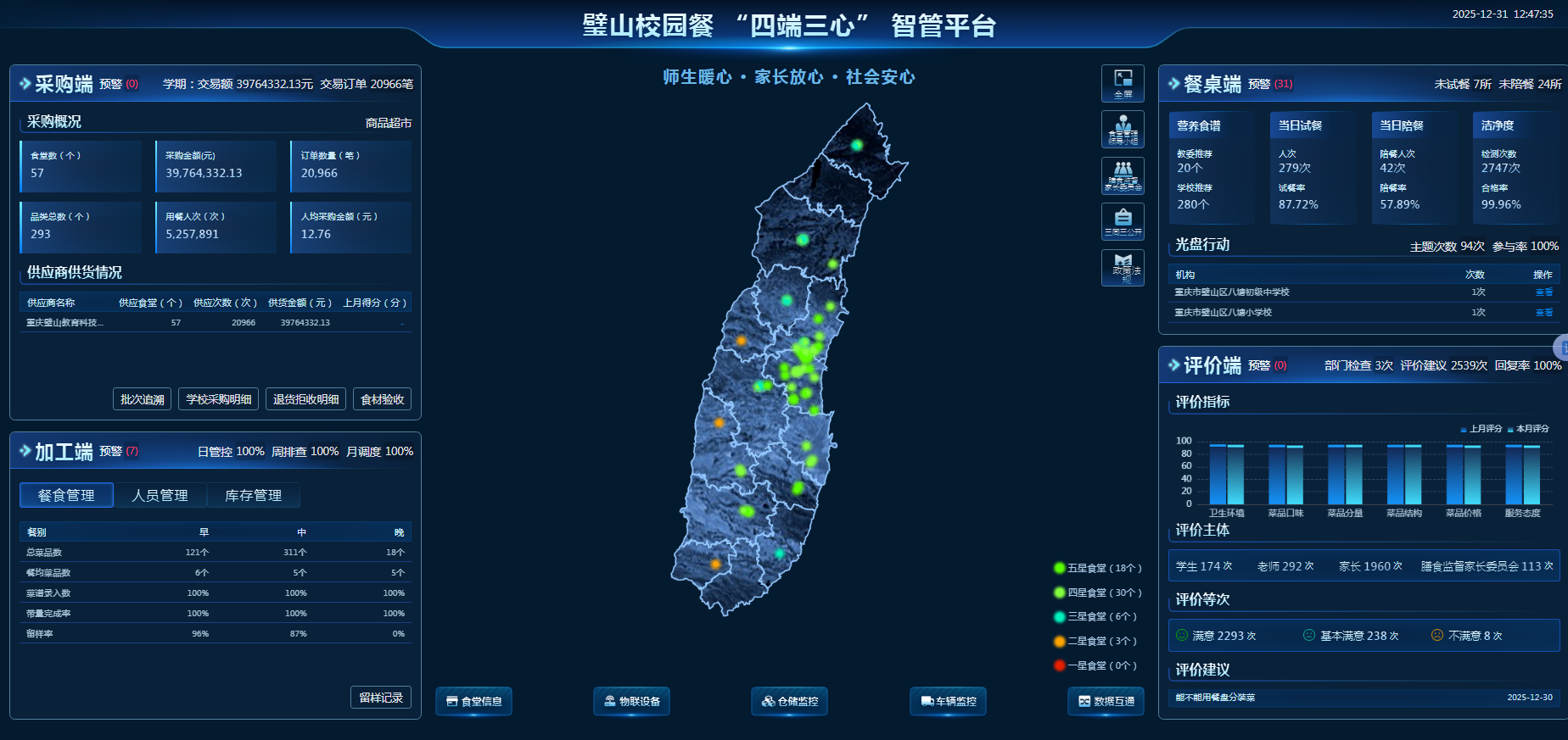 创新打造校园餐“四端三心”智管平台。