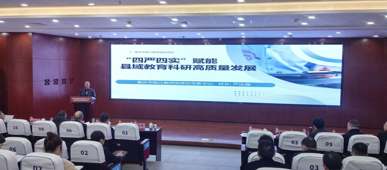 近日,2025年度重庆市教育科研工作会暨科研实验基地建设推进会在重庆奉节召开。重庆市垫江教师进修学校党委书记、校长严达强作为区县进修院校代表,以《“四严四实”赋能县域教育科研高质量发展》为题,分享垫江教科研的实践路径与丰硕成果,为县域教育科研赋能高质量发展提供生动鲜活的实践样本。