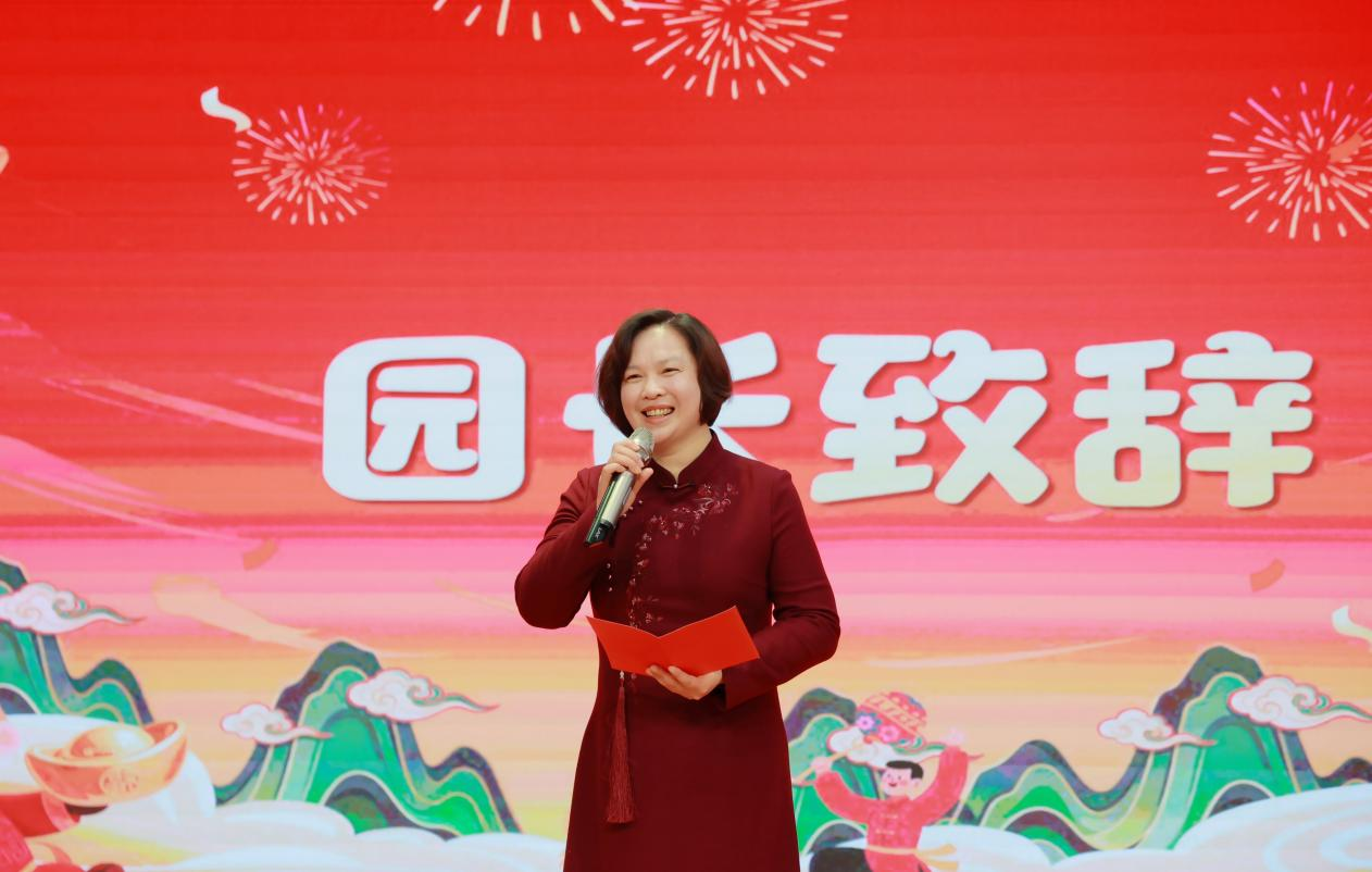 “在北碚实验幼儿园,教育真正回归生命、融入日常,让孩子们在与家乡共鸣、与自然对话、与时代同行的过程中,成长为完整、幸福、充满力量的人。”北碚实验幼儿园党支部书记、园长汪清娅上台动情致辞。她在讲话中回顾了一年来幼儿园在生态教育、课程创新等方面取得的成果,并向全体师生与家长送上新年祝福。