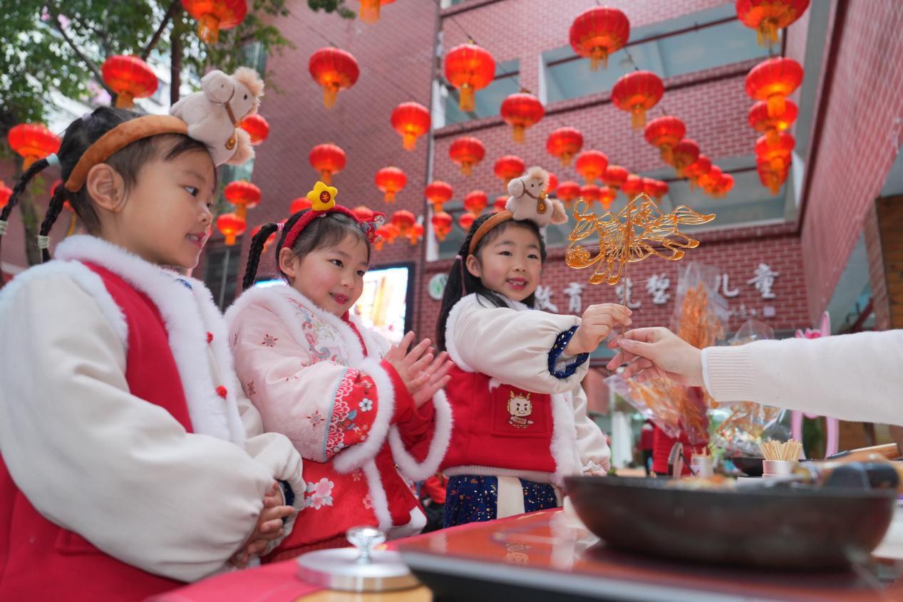 活动中,“财神爷爷”惊喜现身,向台下小朋友派发糖果,将现场气氛推向高潮。一位家长表示:“这样的活动不仅让孩子感受到节日氛围,也在潜移默化中实现了中华优秀传统文化的浸润与熏陶。”